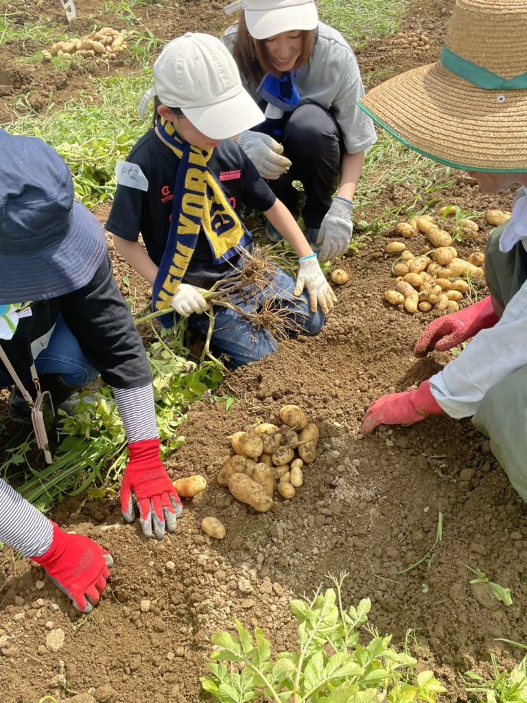 みんなで力を合わせて、ジャガイモを植えました。